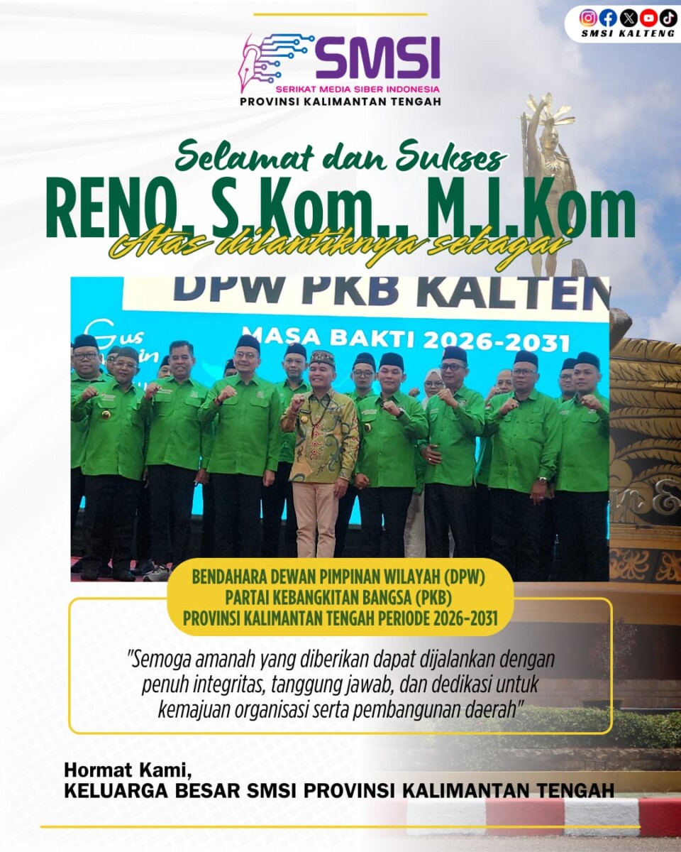 Rahmanto Muhidin Dikukuhkan sebagai Ketua DPW PKB Kalteng, Targetkan Kursi DPR RI pada Pemilu 2029News14 Februari 2026