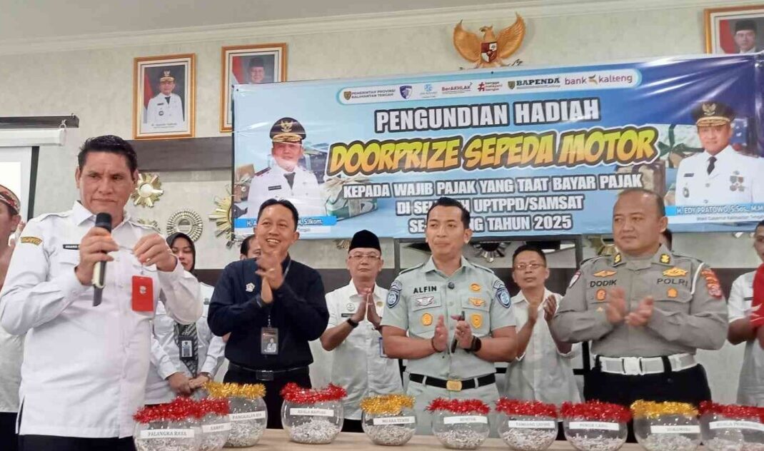 Palangka Raya, Nusaborneo.com – Sebagai bentuk penghargaan kepada masyarakat yang konsisten memenuhi kewajiban perpajakan, Badan Pendapatan Daerah (Bapenda) Provinsi Kalimantan Tengah menggelar pengundian hadiah bagi Wajib Pajak Kendaraan Bermotor yang taat membayar pajak. Kegiatan tersebut berlangsung di Aula Kantor Bapenda Provinsi Kalimantan Tengah, Rabu (7/1/2026).