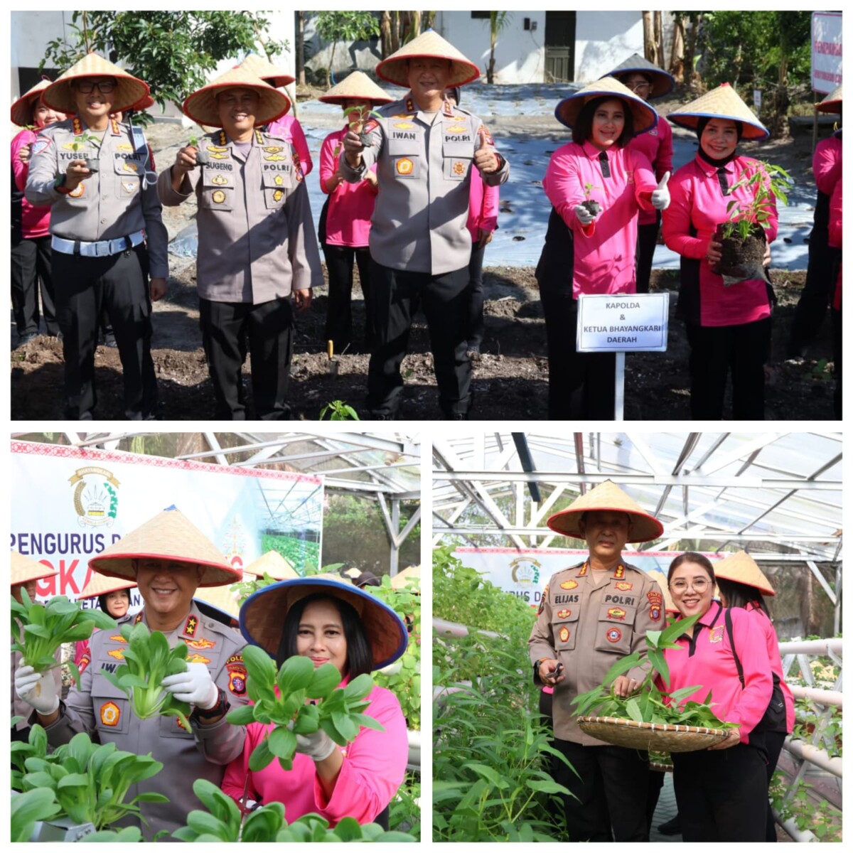 Palangka Raya, Nusaborneo.com – Kepala Kepolisian Daerah Kalimantan Tengah (Kapolda Kalteng), Irjen Pol Iwan Kurniawan, S.I.K., M.Si. bersama Ketua Bhayangkari Kalteng Ny. Maya Iwan Kurniawan, melaksanakan kegiatan panen sayuran di lahan Pekarangan Pangan Lestari (P2L), Mapolda setempat, Selasa (26/8/2025).