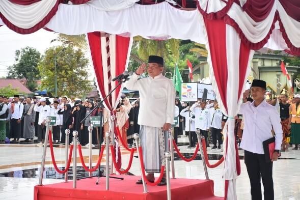 Kuala Kapuas, Nusaborneo.com – Peringatan Hari Santri Nasional (HSN) Tahun 2025 di Kabupaten Kapuas berlangsung khidmat dan penuh makna. Kegiatan yang digelar di Halaman Masjid Agung Al Mukarram Kapuas pada Rabu (22/10/2025) itu dipimpin langsung oleh Bupati Kapuas, H. M. Wiyatno, sebagai Inspektur Upacara.