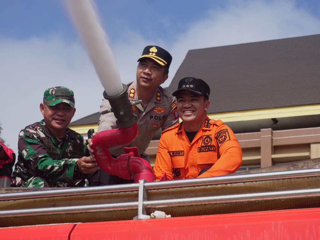 Bupati Rifa’i menyampaikan tekad kuat untuk menjadikan tahun 2025 Zero bencana kami dari pemerintah daerah bersama Kapolres pulang pisau, Pabung 10/11, melaksanakan apel kesiap siagaan karhutla.