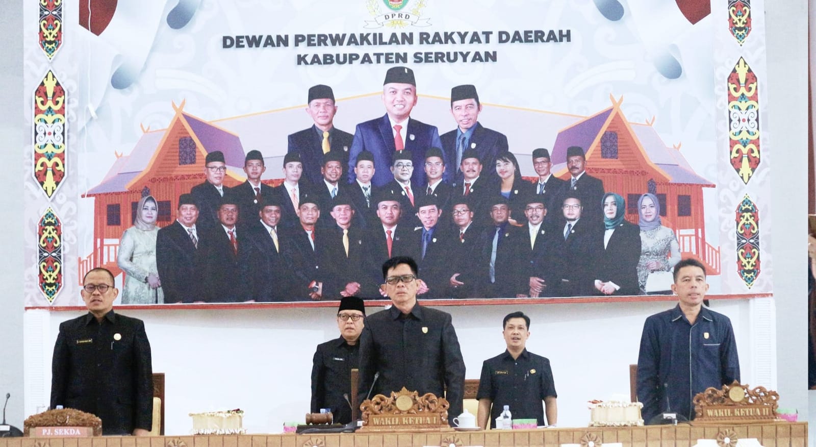 Kuala Pembuang, Nusaborneo.com – DPRD Seruyan menggelar Rapat Paripurna Ke-1 Tahun Masa Persidangan III Tahun 2023-2024 dipimpin Wakil Ketua I DPRD Kabupaten Seruyan, Bambang Yantoko, didampingi oleh Wakil Ketua II Muhamad Aswin, dengan agenda utama adalah Penyampaian Laporan Pertanggungjawaban Bupati Seruyan Tahun 2023, Senin (13/5/2024).
