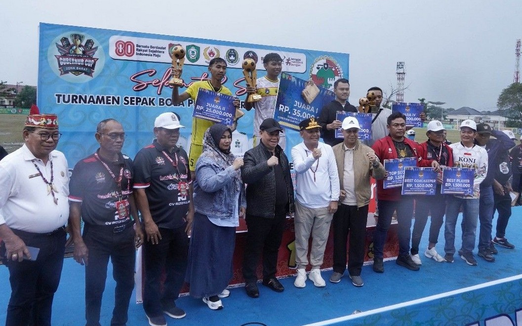 Sampit, Nusaborneo.com – Gubernur Kalimantan Tengah H. Agustiar Sabran secara resmi menutup Turnamen Sepak Bola Gubernur Cup Zona Barat Tahun 2025 di Stadion 29 November, Sampit, Kabupaten Kotawaringin Timur, Sabtu (4/10/2025).