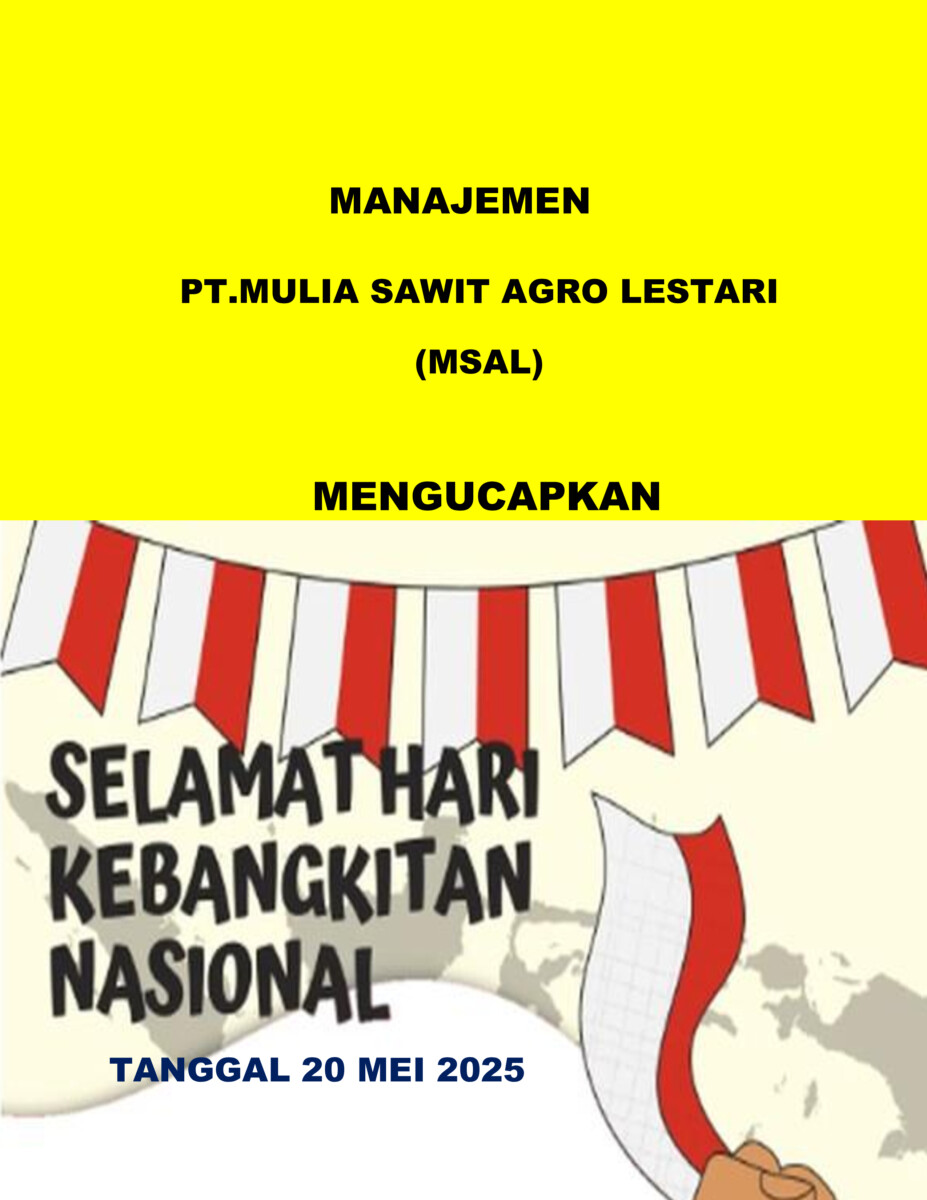 Manajemen PT. Mulia Sawit Agro Lestari mengatakan Harkitnas Tidak Hanya Tentang Mengenang Masa Lalu, Tetapi Juga Momentum Untuk Membangun Bangsa Yang Lebih Unggul Di Masa Depan.