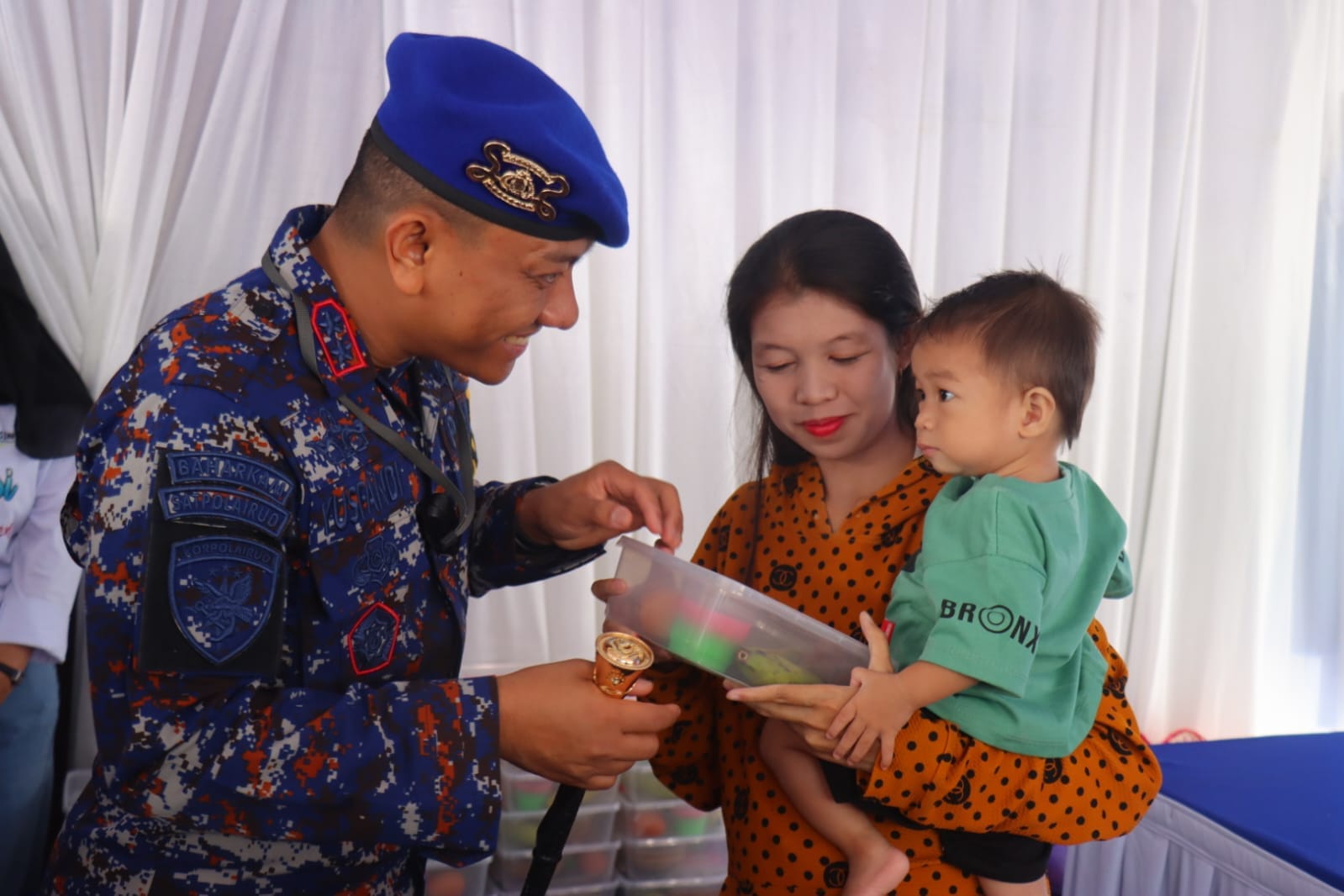 Tidak sampai disitu orang nomer satu dipolres Kobar ini juga melakukan peninjauan kepada masyarakat yang sedang melakukan pemeriksaan kesehatan serta membagikan makanan bergizi kepada anak anak.