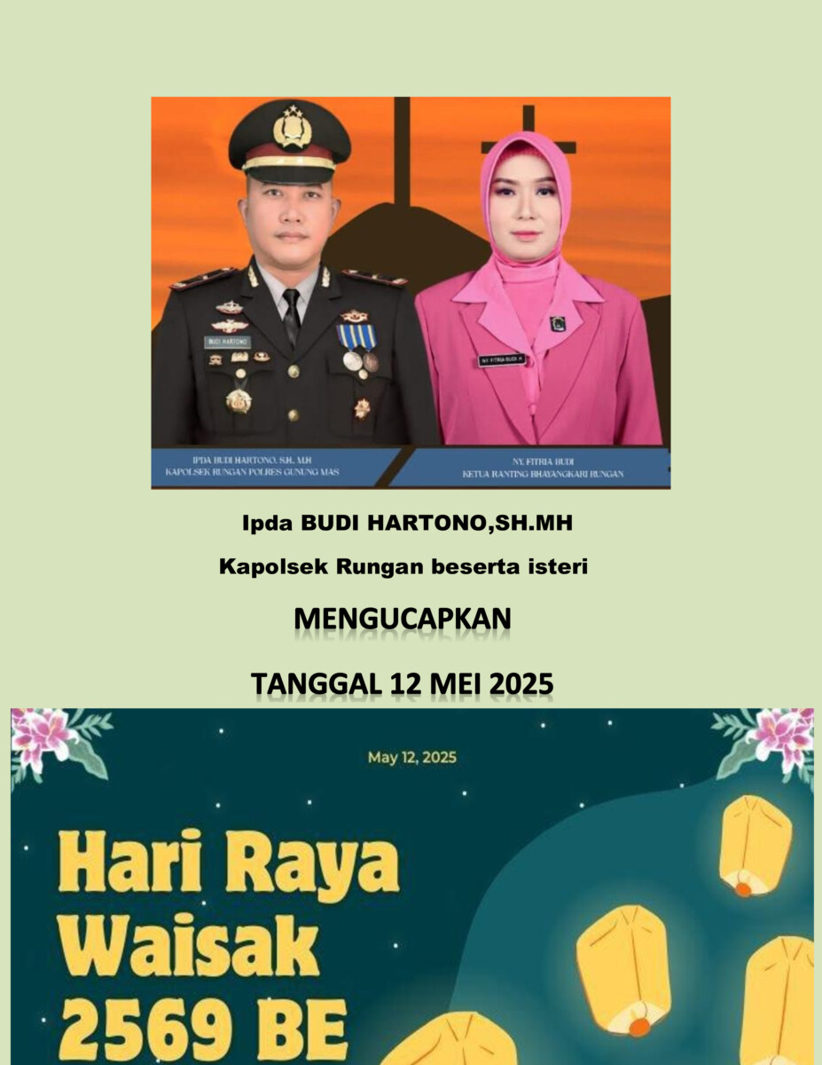 Jajaran Polsek Rungan Mengucapkan Selamat Menyambut Hari Waisak Tanggal 12 Mei 2025 Untuk Umat Buddha Yang Merayakan