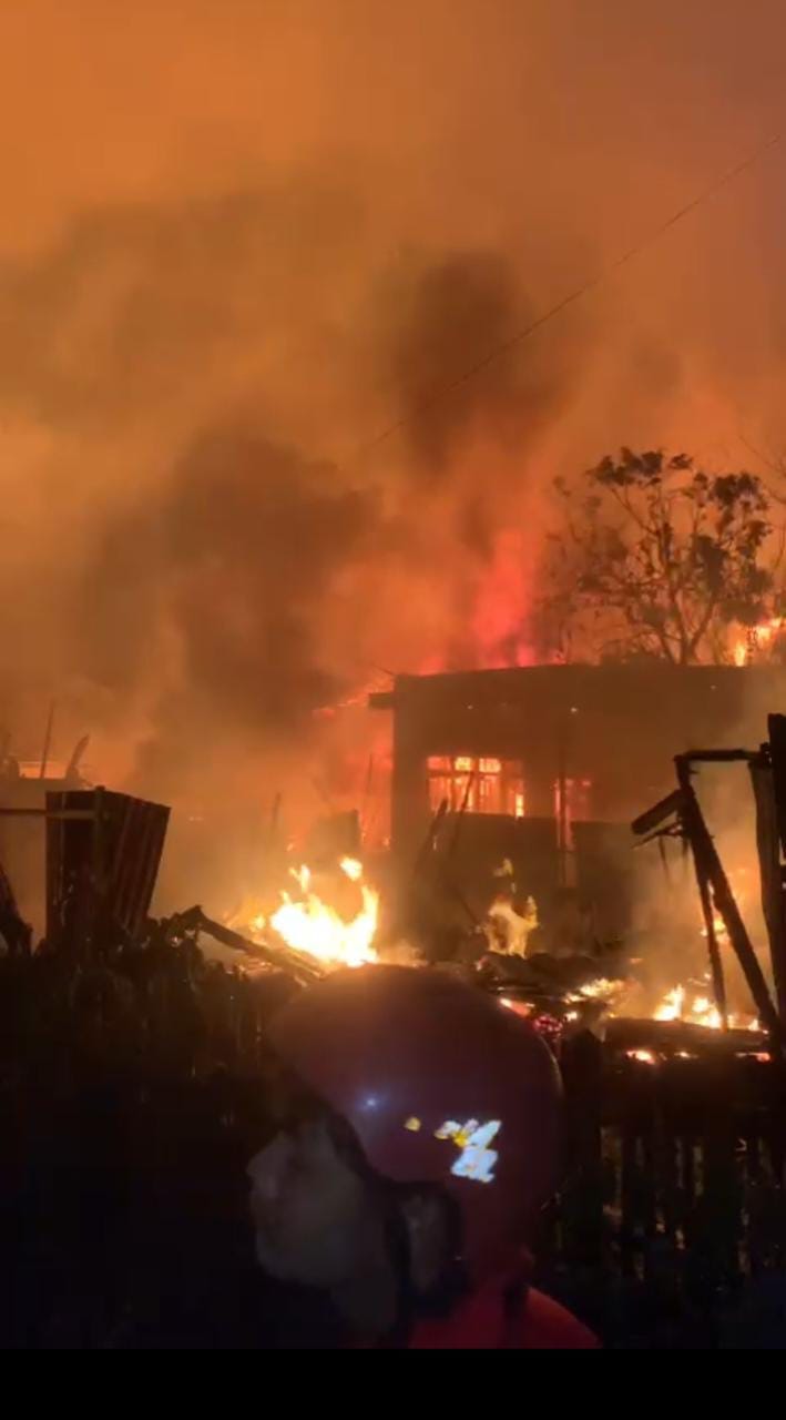 Foto Keteranga : diduga korsleting listrik, api lalap 6 unit rumah di Kuala Kapuas, Minggu dinihari 3/9/2023.