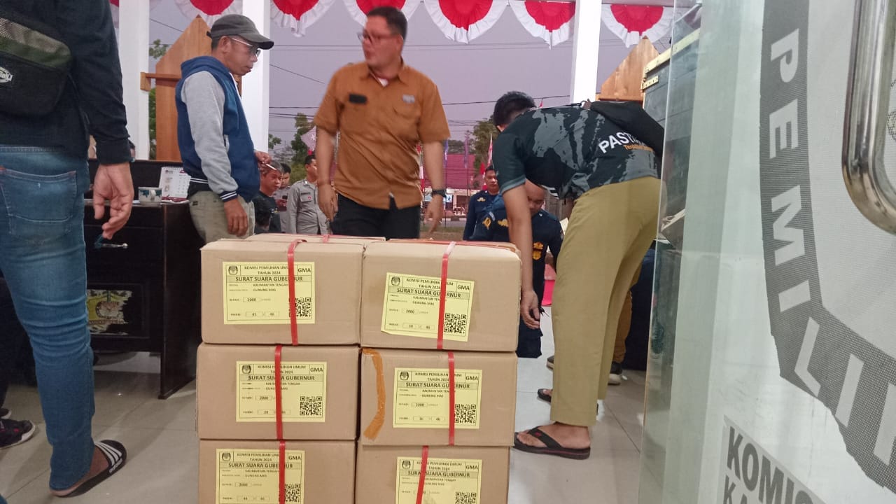 Kuala Kurun, Nusaborneo.com – Komisi Pemilihan Umum (KPU) Kabupaten Gunung Mas (Gumas) menerima logistik berupa surat suara pilkada serentak tahun 2024. Kedatangan surat suara itu berjalan lancar dan disaksikan oleh jajaran KPU, bawaslu dan pihak kepolisian.