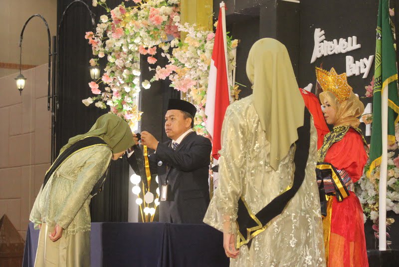 Prosesi pemasangan samir oleh Kepala MAN Kota Palangka Raya H Ahd Fauzi SAg MSi kepada para siswa di acara perpisahan, Kamis (4/5/2023).