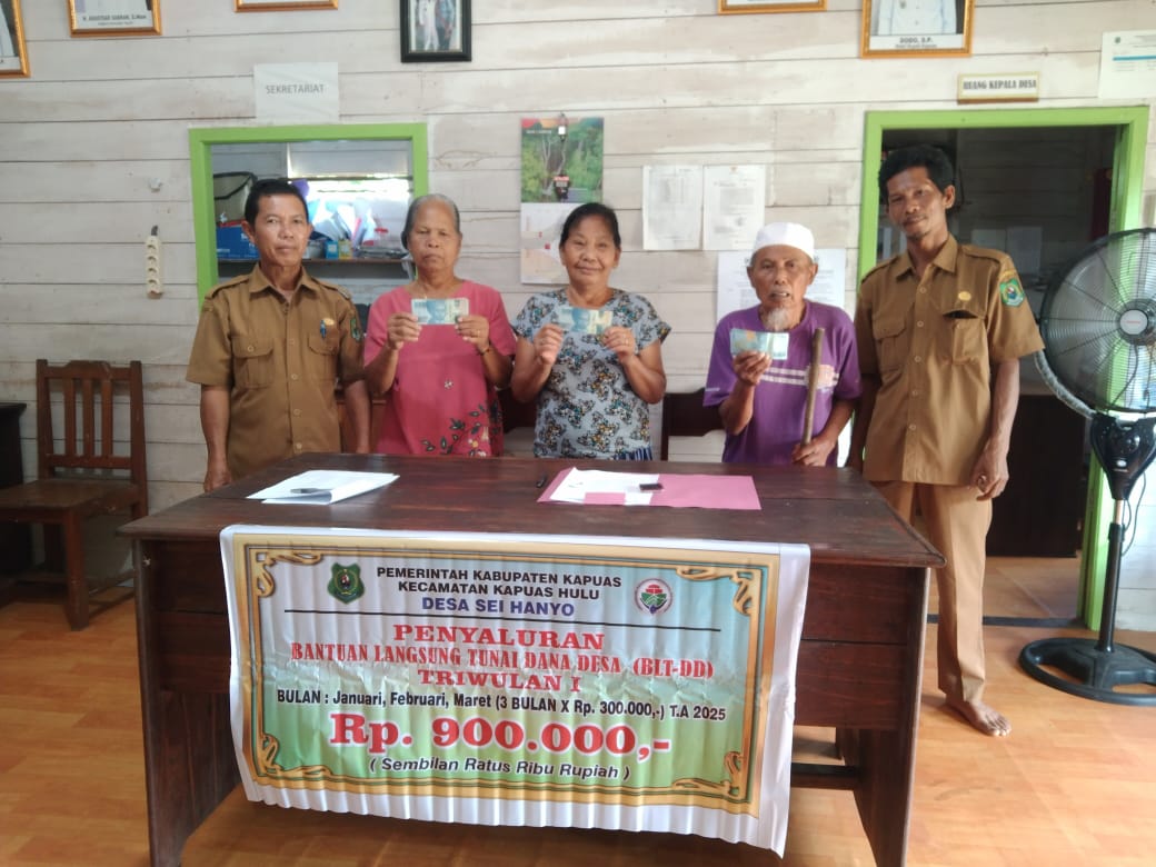 Kuala Kapuas, Nusaborneo.com -Bertempat di Balai Desa, Kepala Desa Sei Hanyo, Dinas secara langsung saksikan penyerahan Bantuan Langsung Tunai (BLT) dari alokasi anggaran Dana Desa (DD) triwulan pertama periode bulan Januari, Pebruari dan Maret tahun 2025.