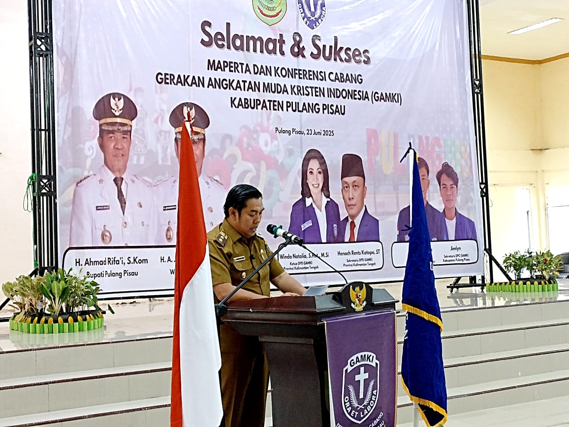Pulang Pisau, Nusaborneo.com – Wakil Bupati Pulang Pisau Ahmad Jayadikarta mewakili Bupati Ahmad Rifa’i menghadiri acara pembukaan Gerakan Angkatan Muda Kristen Indonesia (GAMKI) Kabupaten Pulang Pisau tahun 2025 bertempat di aula kantor Bapperida setempat, Senin( 23/6).