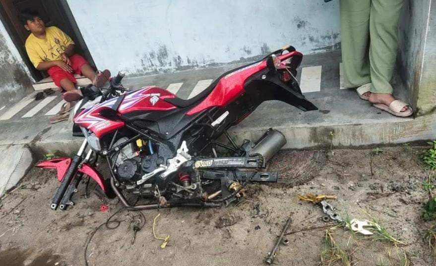 Selain itu, aksesoris motor lainnya seperti cakram depan, master rem, Aisiu, dan filter udara juga turut dicuri oleh pelaku.