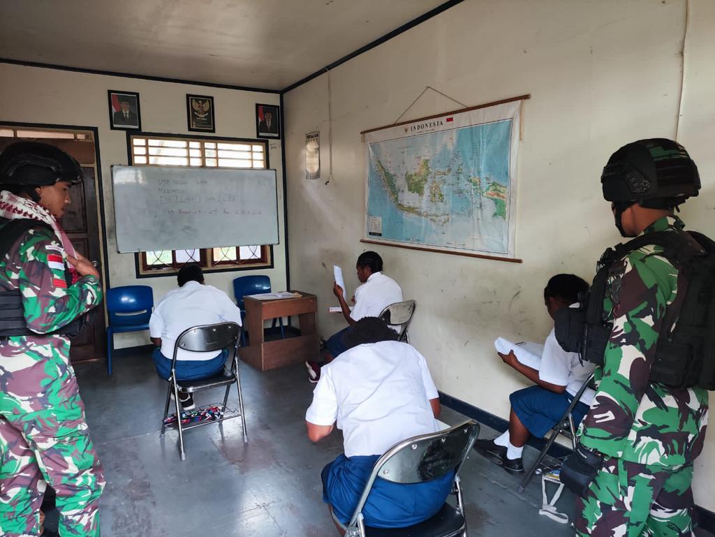 Personel Satgas Yonif R 631/Atg Sukseskan Pelaksanaan Ujian Nasional di SMP Negeri Tsing