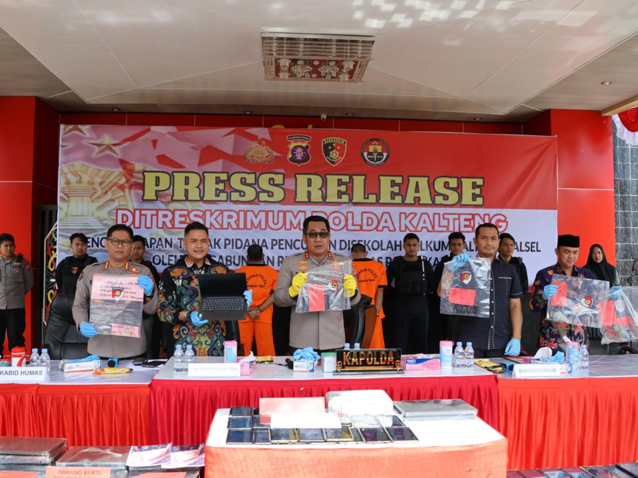 Hal tersebut, disampaikan langsung Kapolda Kalteng Irjen Pol Drs. Djoko Poerwanto, didampingi Plt. Kepala Dinas Pendidikan Prov. Kalteng M. Reza Prabowo, Ditreskrimum dan Kabidhumas saat memimpin langsung konferensi pers, di Loby Mapolda setempat, Kamis (4/7/2024) siang.