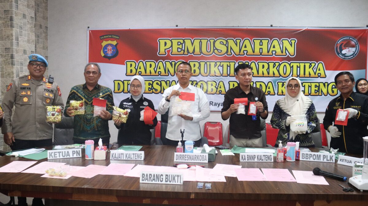 Palangka Raya, Nusaborneo.com – Pemusnahan dilakukan Direktorat Reserse Narkoba Polda Kalteng di Ruang Rapat Ditresnarkoba, Jalan Tjilik Riwut Km 1, Palangka Raya, Kamis (23/4/2026), sebagai bentuk komitmen aparat dalam memutus rantai bisnis haram narkoba di Bumi Tambun Bungai.
