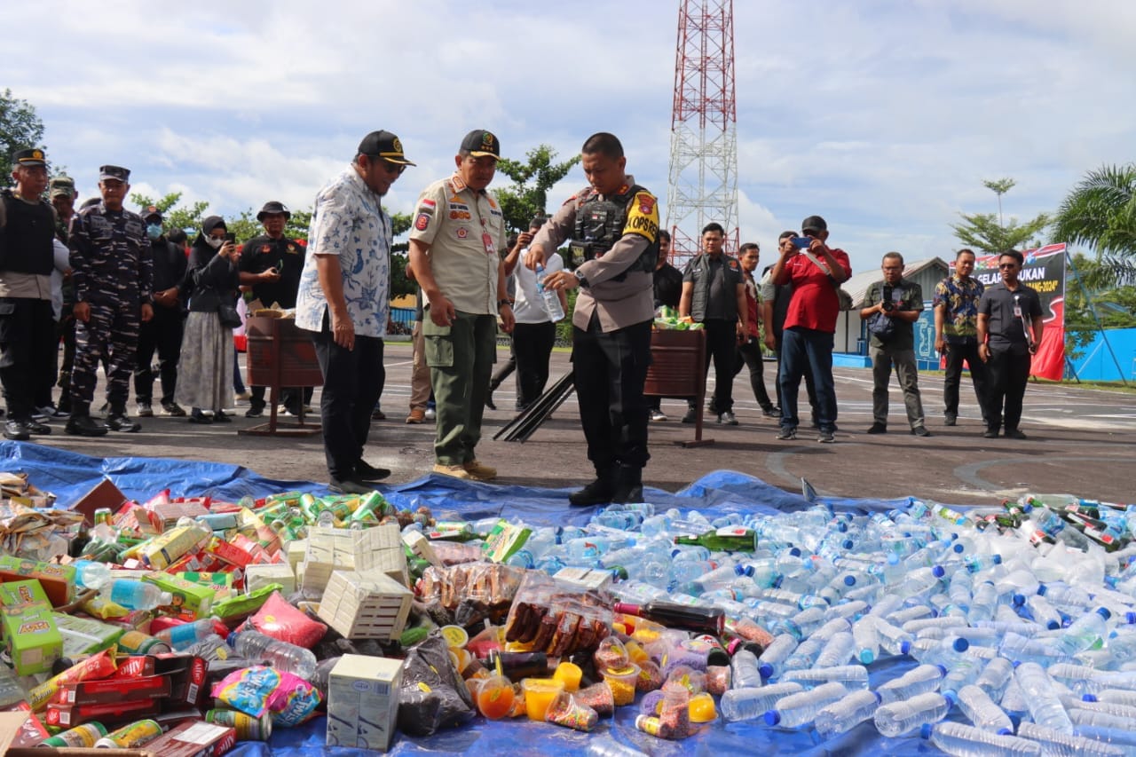 Adapaun beberapa barang bukti hasil sitaan yang dimusnahkan diantaranya berbagai jenis Miras Botolan, narkotika jenis sabu, berbagi macam jenis kenalpot bronk, serta makanan ringan yang sudah expired/Kadaluwarsa.