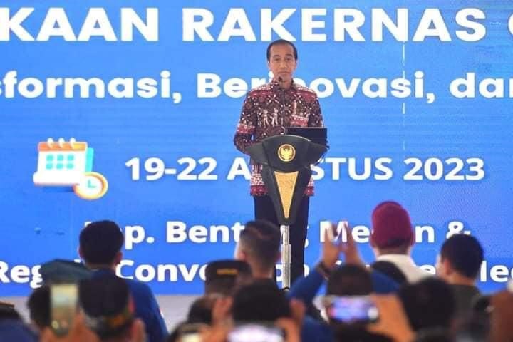 Presiden Joko Widodo menghadiri pengukuhan kepengurusan dewan pimpinan pusat (DPP) dan peresmian pembukaan rapat kerja nasional (rakernas) Gerakan Angkatan Muda Kristen Indonesia (GAMKI) Tahun 2023 di Lapangan Banteng, Kota Medan, Provinsi Sumatra Utara, pada Sabtu, 19 Agustus 2023. Dalam sambutannya, Presiden menekankan pentingnya menjaga persatuan dan kekompakan di tahun politik yang mulai menghangat.