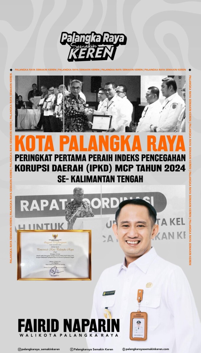 Palangka Raya, Nusaborneo.com – Luar Biasa, Pemerintah Kota (Pemkot) Palangka Raya meraih peringkat pertama dalam Indeks Pencegahan Korupsi Daerah (IPKD) Tahun 2024 yang diukur melalui Monitoring Center for Prevention (MCP) oleh Komisi Pemberantasan Korupsi (KPK).