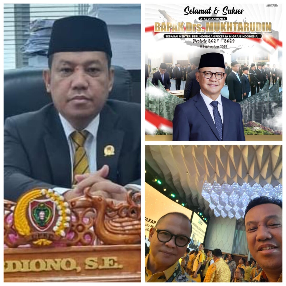 Palangka Raya, Nusaborneo.com – Anggota Komisi I DPRD Kalimantan Tengah, Purdiono, menyampaikan ucapan selamat dan sukses atas dilantiknya Mukhtarudin sebagai Menteri Perlindungan Pekerja Migran Indonesia (P2MI) oleh Presiden Prabowo Subianto di Istana Negara, Jakarta, Senin (8/9/2025).