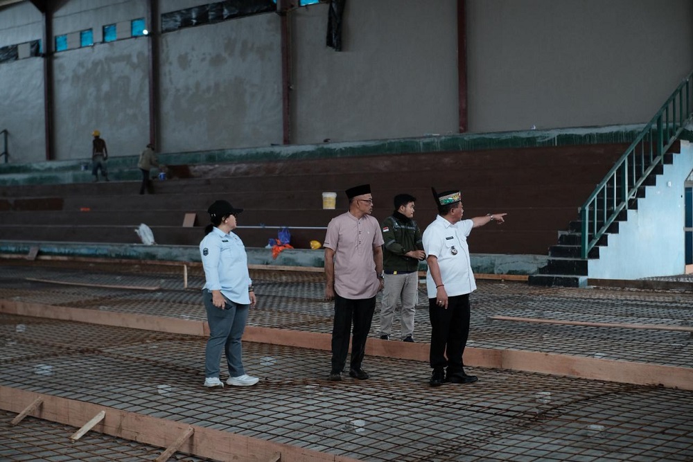 Kuala Kapuas, Nusaborneo.com – Bupati Kapuas HM Wiyatno meninjau secara langsung progres pekerjaan rehabilitasi Gedung Olahraga (GOR) Panunjung Tarung, Jumat (31/10/2025). Dalam kunjungan tersebut, Bupati didampingi oleh Kepala Dinas Pekerjaan Umum dan Penataan Ruang (PUPR) Kabupaten Kapuas, Hargatin.