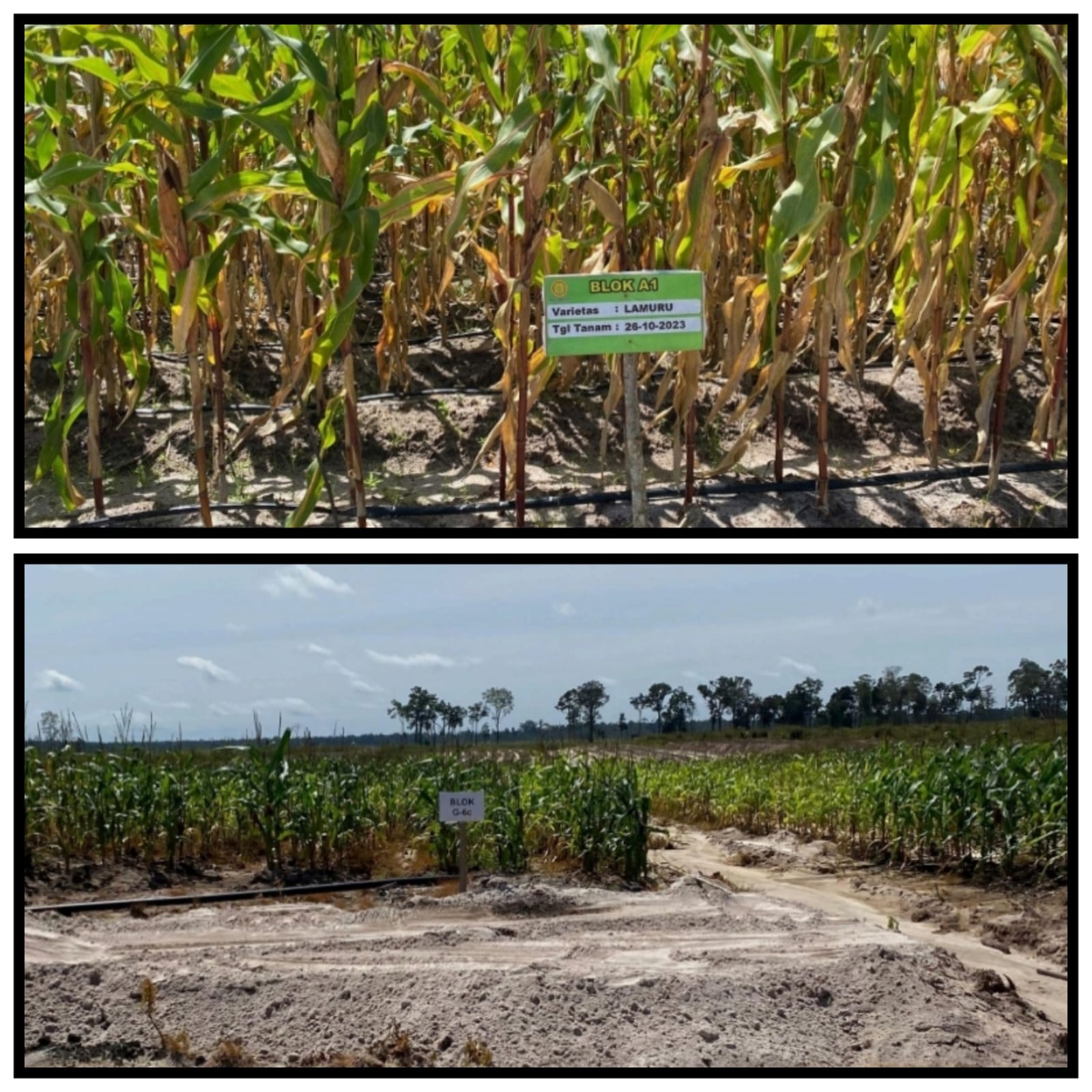 Tinggi tumbuhan singkong tersebut kurang lebih selutut orang dewasa, sedangkan singkong yang ditanami pada awal food estate ini dibuka sudah terbengkalai dan banyak mati. Untuk tanaman jagung ditemukan kondisinya kurang bertumbuh dengan baik. Seperti yang terlihat pada papan keterangan BLOK G-6c, di mana tinggi jagung tidak lebih tinggi dari pinggang orang dewasa dan daunnya berwarna kuning, padahal telah ditaburi tanah subur di sekitaran pohon jagung.