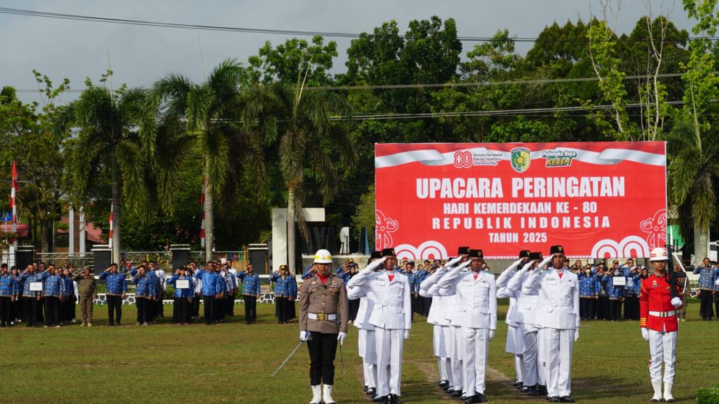 Palangka Raya, Nusaborneo.com — Pemerintah Kota Palangka Raya menggelar Upacara Bendera dalam rangka memperingati Hari Ulang Tahun ke-80 Kemerdekaan Republik Indonesia di Halaman Kantor Wali Kota, Minggu (17/8).